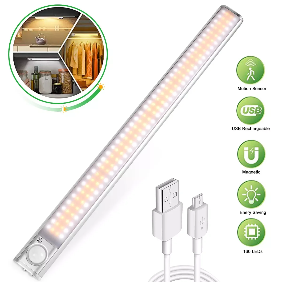 Светильник с датчиком движения, светильник светодиодный, ночсветильник для шкафа, подсветсветильник для шкафа, гардероба, ночная лампа для ...