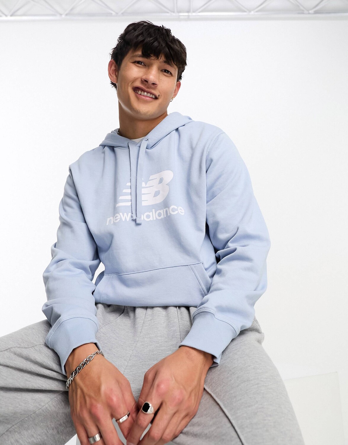 Светло-голубая флисовая худи с логотипом New Balance Essentials, Синий