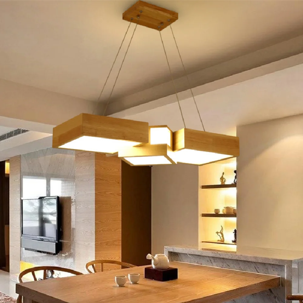 Светодиодная Подвесная лампа в скандинавском стиле, креативный Деревянный светильник из массива дерева для столовой, настольная лампа, дер...
