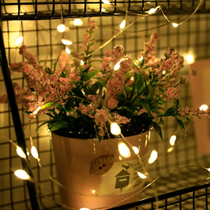 Светодиодная гирлянда из медной проволоки с аккумулятором в комплекте, 15 шт.