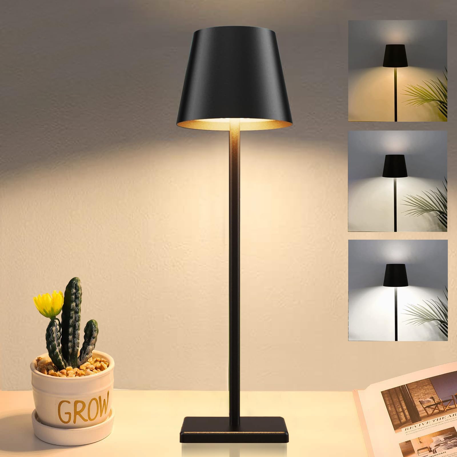 Светодиодная настольная лампа, портативная сенсорная настольная лампа, перезаряжаемая винтажная лампа для ресторана, спальни, бара, кемпинга, кофейни, ночника чёрный