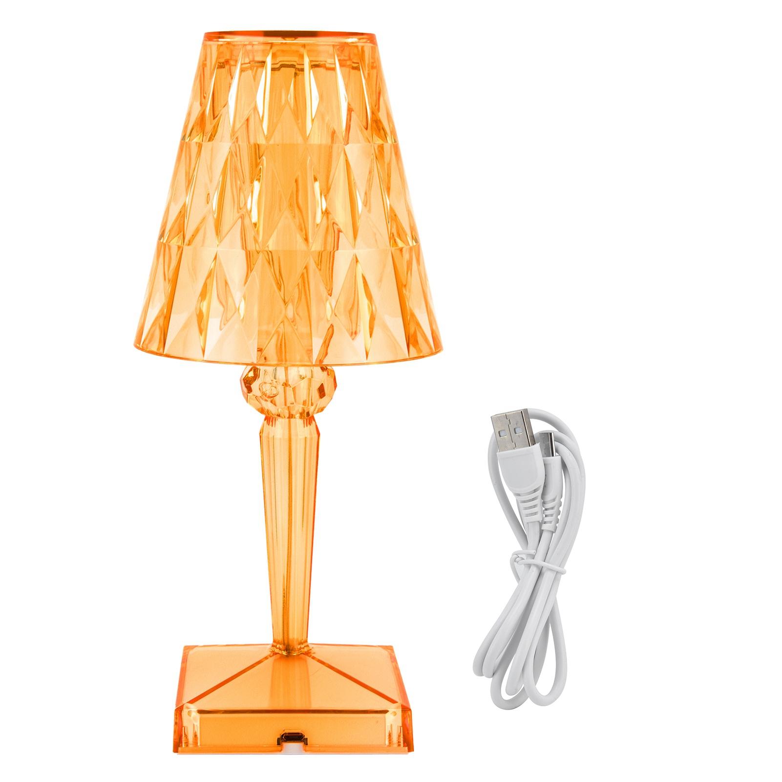 Светодиодная хрустальная настольная лампа с прозрачной призмой, регулируемая яркость, настольная лампа с зарядкой от USB, внутреннее освещение, розовый оранжевый