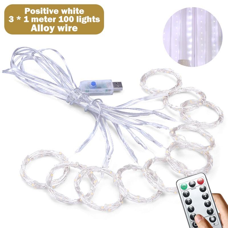 Светодиодные гирлянды для штор, 8 режимов, USB голосовое управление, гирлянды, гирлянда, свадебный рождественский декор для дома, спальни, фестиваля 3Mx1m 100LED белый