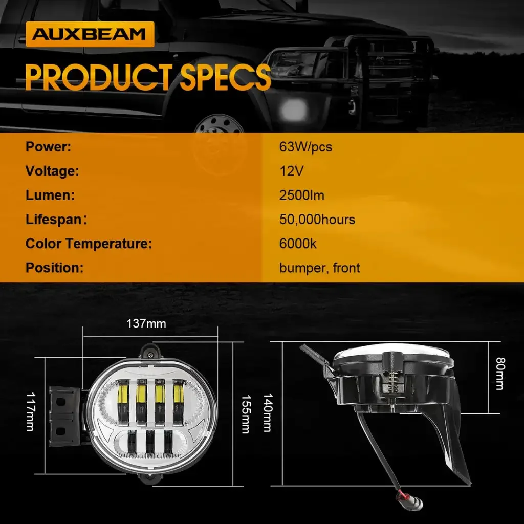 Светодиодные противотуманные фары 7,1 дюйма 63 Вт 6000K для Dodge Ram 1500/2500/3500 2002-2009 / Durango 2004-2006, передние противотуманные фары в сборе