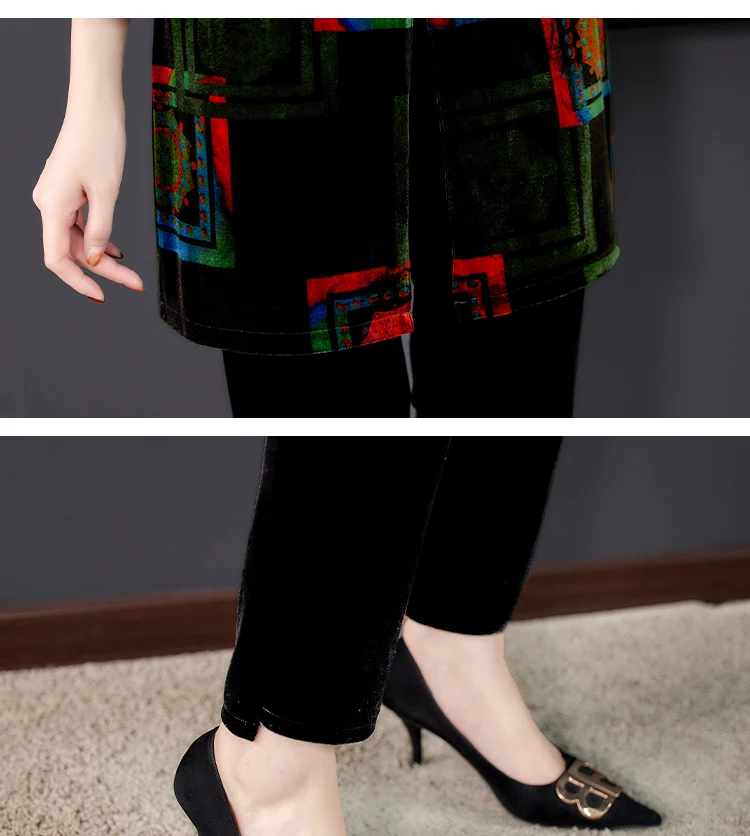 Vintage Velvet Suit Women Two Piece Set Top And Pants Floral Women's Tracksuits Ensemble Femme Deux Pieces Conjunto Feminino