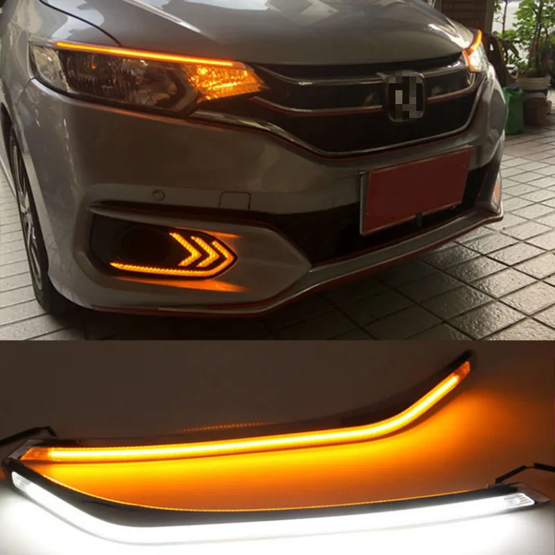 Светодиодный дневные ходовые огни для Honda Jazz fit 2015-2020 светодиодный DRL противотуманный фонарь с функцией поворота автомобильный Стайлинг