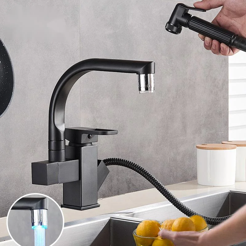 Светодиодный или нет черный кухонный кран, выдвижной смеситель для биде с креплением на Деку, смеситель для горячей и холодной воды 360 Враща...