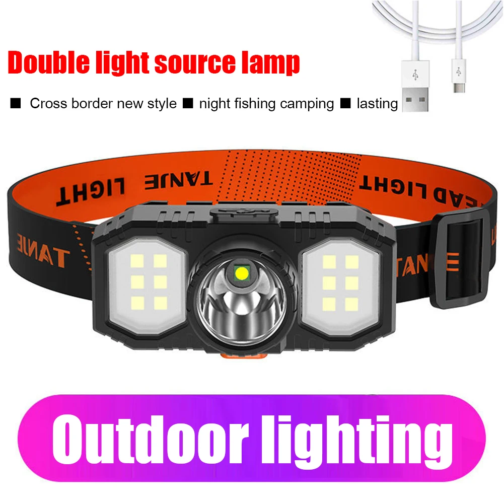 Светодиодный налобный фонарь XPE COB, водонепроницаемый головной фсветильник рь с USB-зарядкой, фонарь для ночной рыбалки, походов