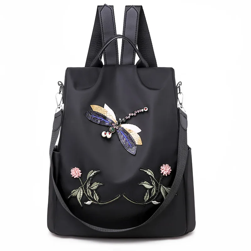 New Fashion National Simple Anti-theft 3D Embroidery Dragonfly Travel Laptop Backpack For Women Dropshipping