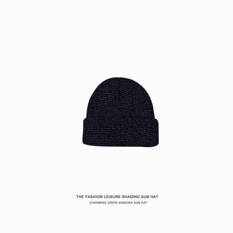 Светоотражающая вязаная шапка, уличная личность, пуловер, женская повседневная шерстяная вязаная шапка One size темно-синий