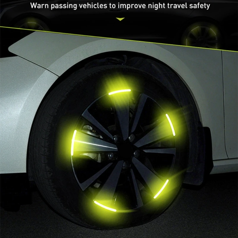Светоотражающие наклейки на колеса. Светоотражающие украшения на внутреннем колесе. Светоотражающие автомобильные шины.