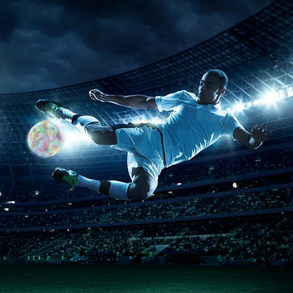 Светоотражающий футбольный мяч, светящийся ночной светящийся футбольный мяч для взрослых и детей, размер 5, светоотражающий мяч с камерой