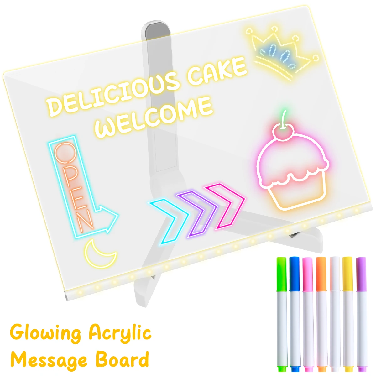Светящаяся акриловая доска для сообщений, прозрачная настольная доска для записей и заметок с 7 акриловыми ручками для письма, ночник, светильник, Декор, доска для сухого стирания