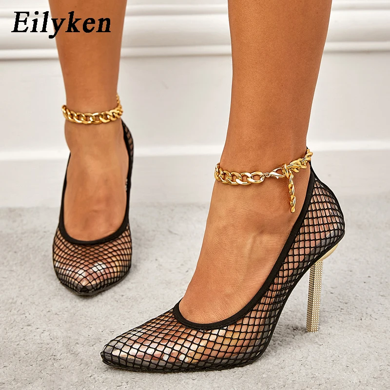Eilyken/модные черные женские туфли-лодочки с ремешком и пряжкой на цепочке; Пикантные прозрачные туфли из ПВХ на тонком каблуке; Вечерние свад...