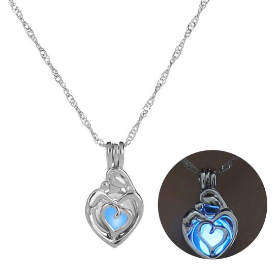 Светящееся ожерелье, приятное для кожи, нержавеющее, ювелирное ожерелье в форме сердца, декор небесно-голубой