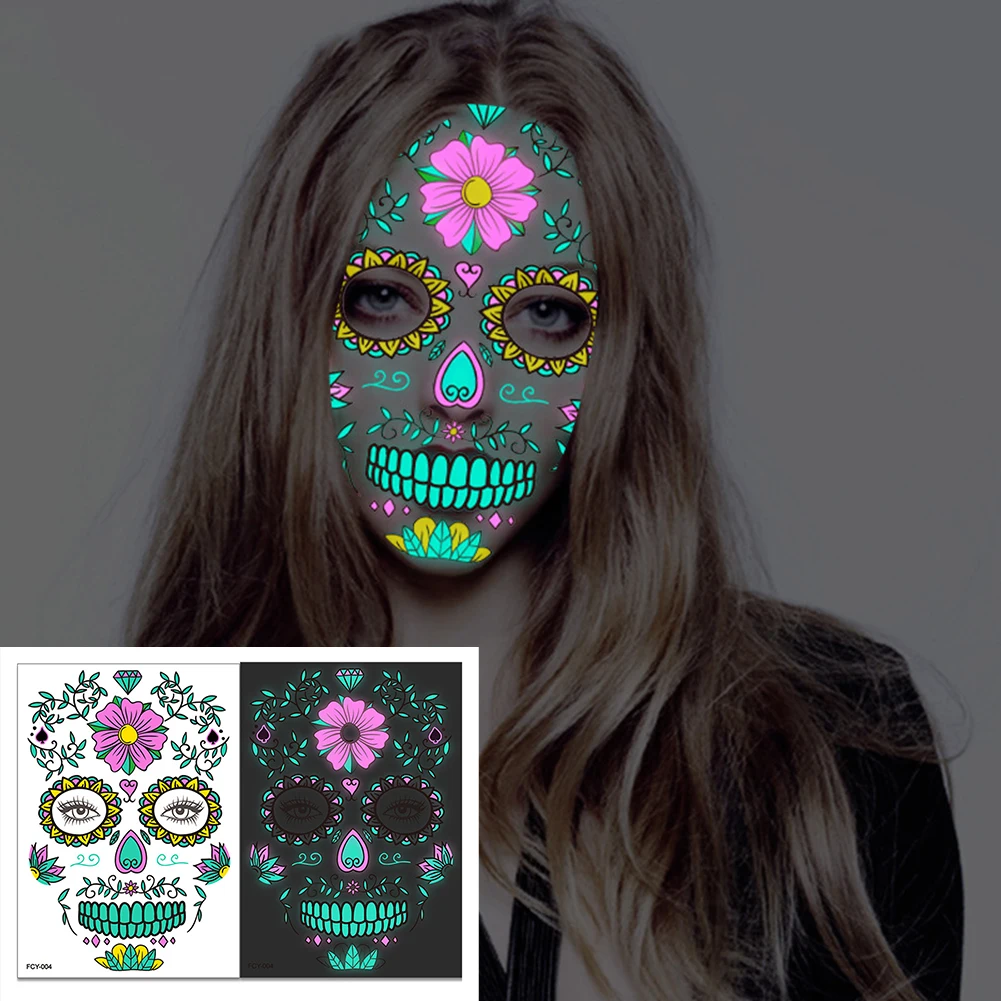 Светящиеся временные тату-наклейки на лицо на Хэллоуин, безопасные наклейки на кареты для макияжа на Хэллоуин