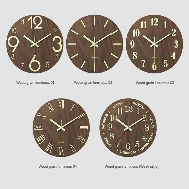 Светящиеся деревянные настенные часы, скандинавский бесшумный кварцевый Настенный декор для спальни, гостиной, 12 дюймов