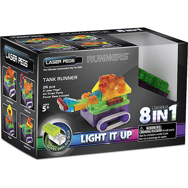Светящийся конструктор 8 в 1 Laser Pegs "Танк" с цветными деталями, 26 деталей, Разноцветный