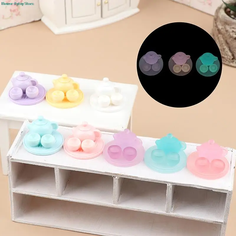Светящийся мини-чайник из смолы, чайный набор, игрушки, микро-ландшафтное украшение, мультяшный милый «сделай сам», имитация, реквизит, кухонные аксессуары