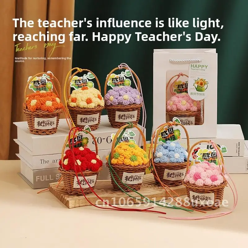 Teachers' Day Gifts High-end Gifts for Teachers Crocheted Hand Basket Small Flower Blossom Gifts for Kindergarten Teachers