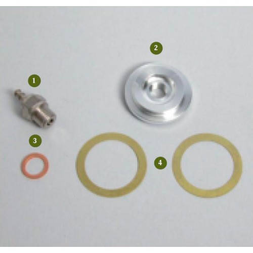В комплекте пара регулировочных шайб, которыми можно незначительно изменять объем камеры сгорания. Установив обе подкладки добиваемся большей долговечности. Убрав одну из проставок поднимаем мощность, за счет чего увеличивается износ.