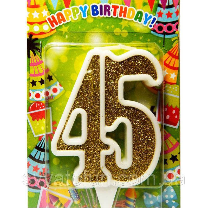 Свеча цифра 45 юбилейная с золотом