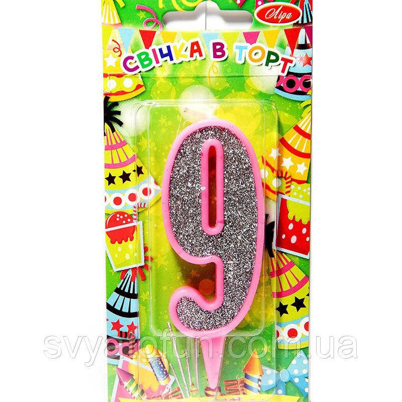 Декоративная свеча в форме цифры "9" розового цвета с серебром станет прекрасным декором для вашего торта или другого десерта.