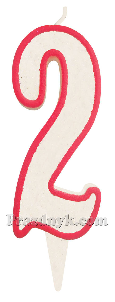 Свеча для торта "Цифра" (2) белая с красным кантом, с блеском ( глиттером ). Высота свечи 73 мм, ширина - 35 мм, толщина - 8 мм.