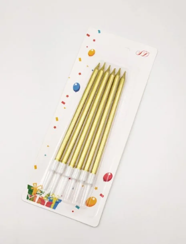 В комплект входит 6 длинных свечей золотого цвета с подставками