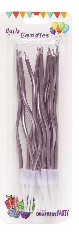 Свечи для торта "Волнистые" хром 12 шт, розовые