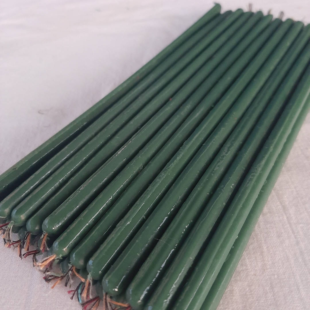 Свечи зеленые набор из 25 шт. Цена 125 гр. Высота 21 см, диаметр 0.7 см.