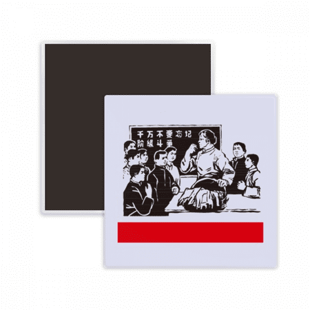 Chinese Red Educational Propaganda Fight Square Ceracs Fridge Magnet Keepsake Memento