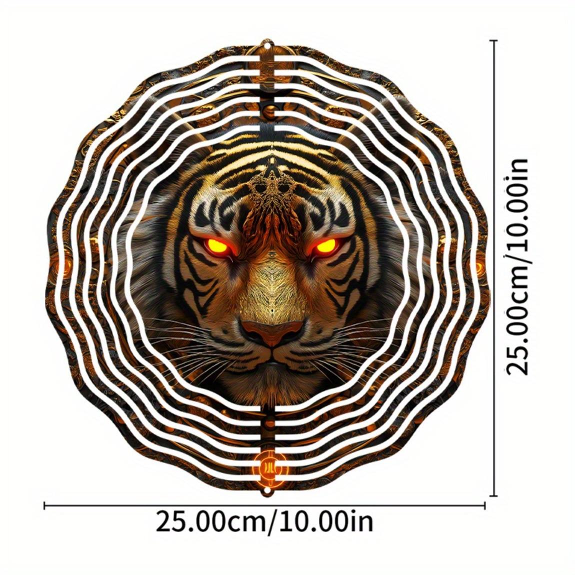 Свирепый тигр металлический колокольчик ветра с вращающимся на 360 градусов крючком Яркий уличный декор для сада, патио, двора Комплексные полосы Светящиеся оранжевые глаза