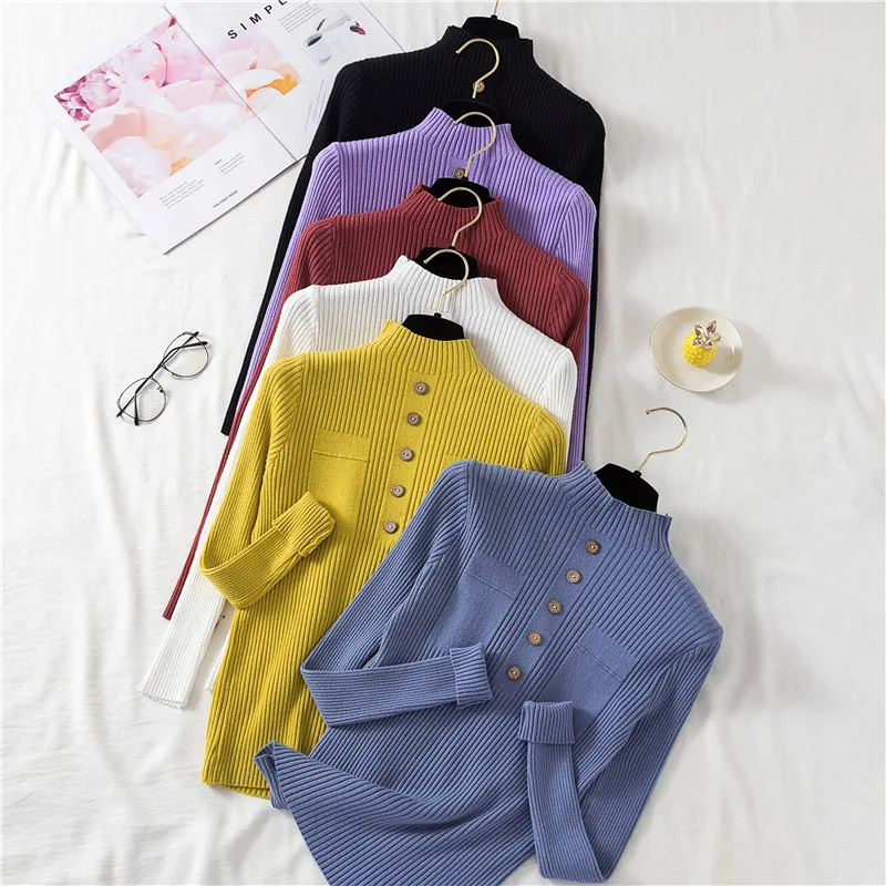 Свитер Женский вязаный однотонный с высоким воротником и длинным рукавом
