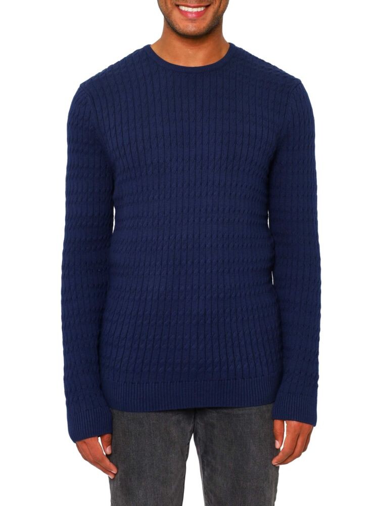 Свитер вязанной вязки с круглым вырезом Vellapais, темно-синий