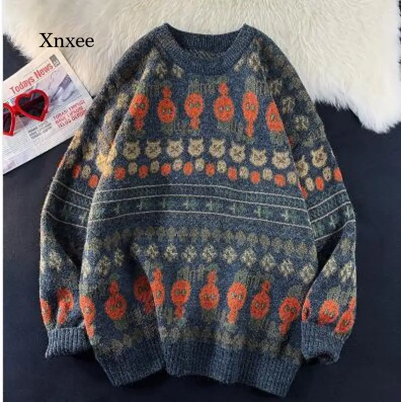 Свитер в стиле Харадзюку, Мужская одежда, модные мужские вязаные свитера, пуловеры, ретро одежда, трикотажная одежда в стиле хип-хоп, осенняя...