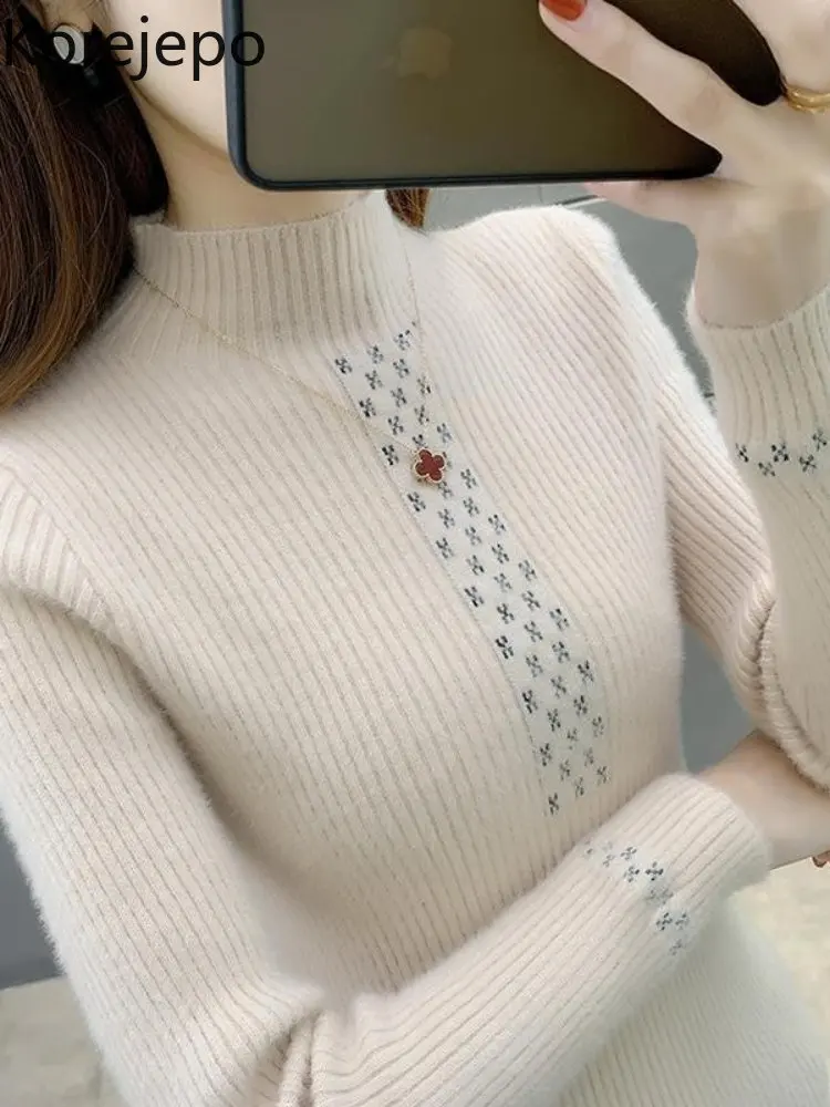 Свитер женский осенне-зимний вязаный с длинным рукавом и высоким воротником