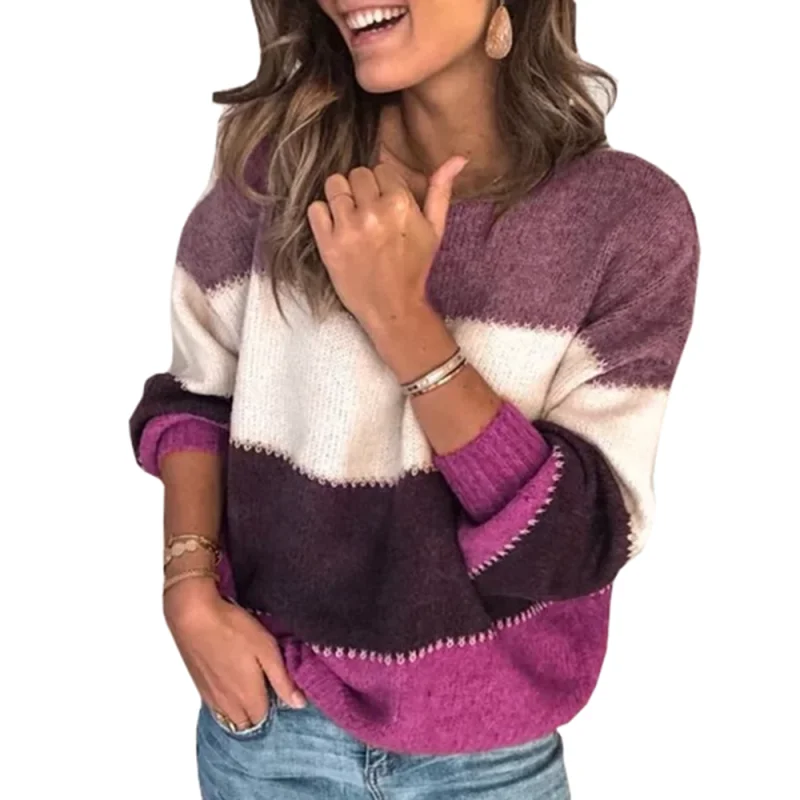 Свитер женский, с круглым вырезом, в полоску, Повседневный, вязаный, Осень-зима S-XL