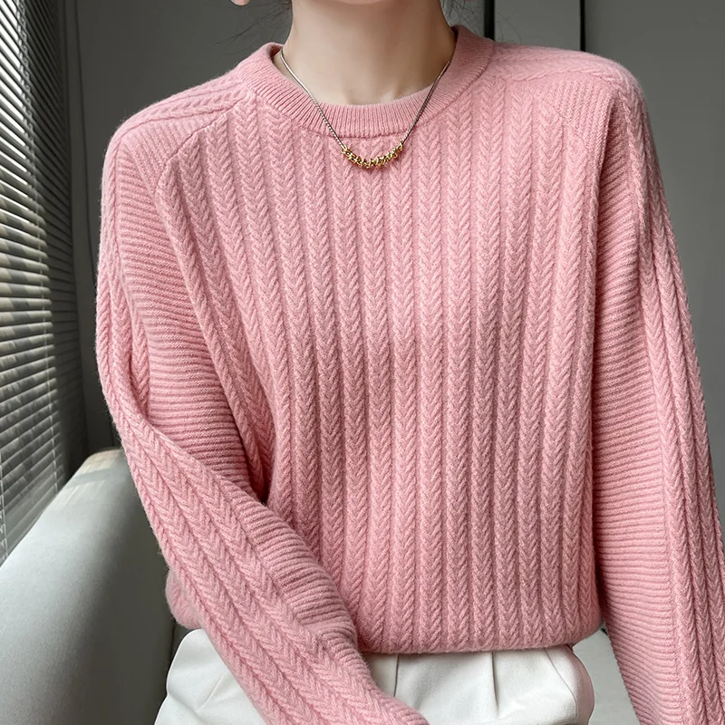Свитер женский трикотажный однотонный с длинным рукавом и круглым вырезом