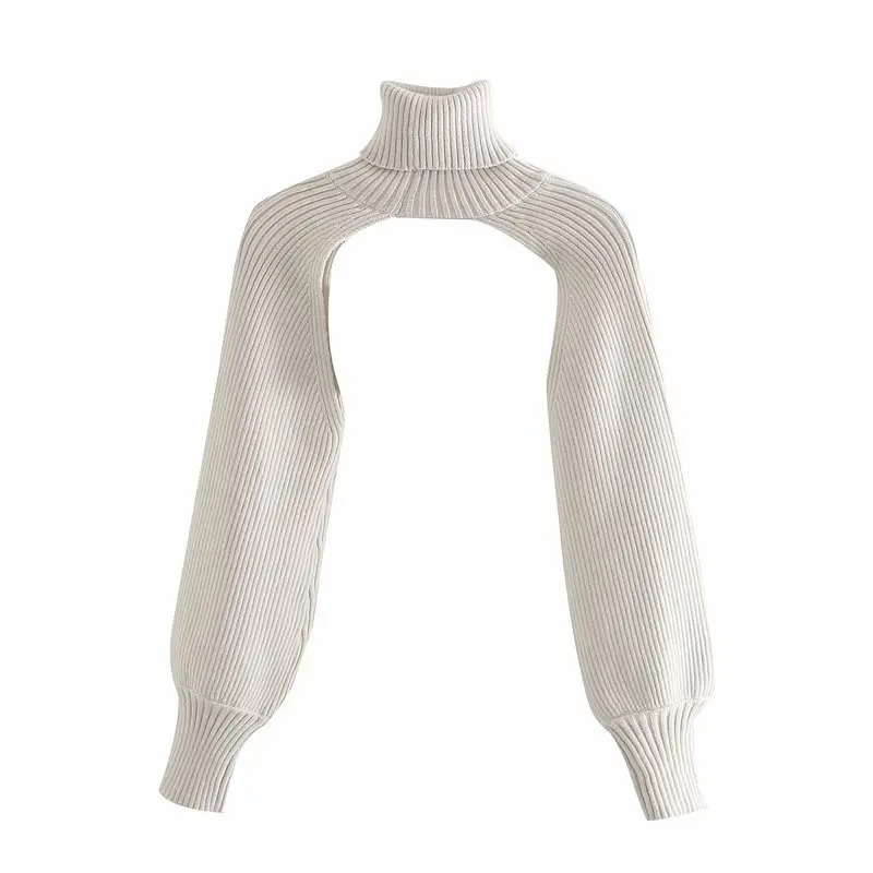 Свитер женский шерстяной однотонный с отворотом и рукавами-фонариками