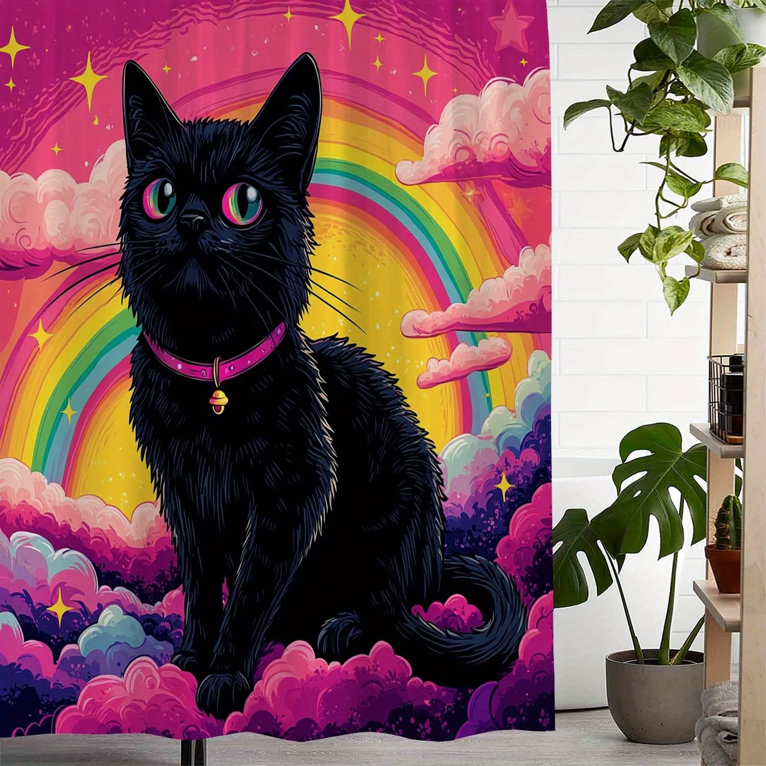 Винтажная креативная занавеска для душа с принтом «Котенок, радужные облака и звезды», оконная занавеска с 12 крючками
