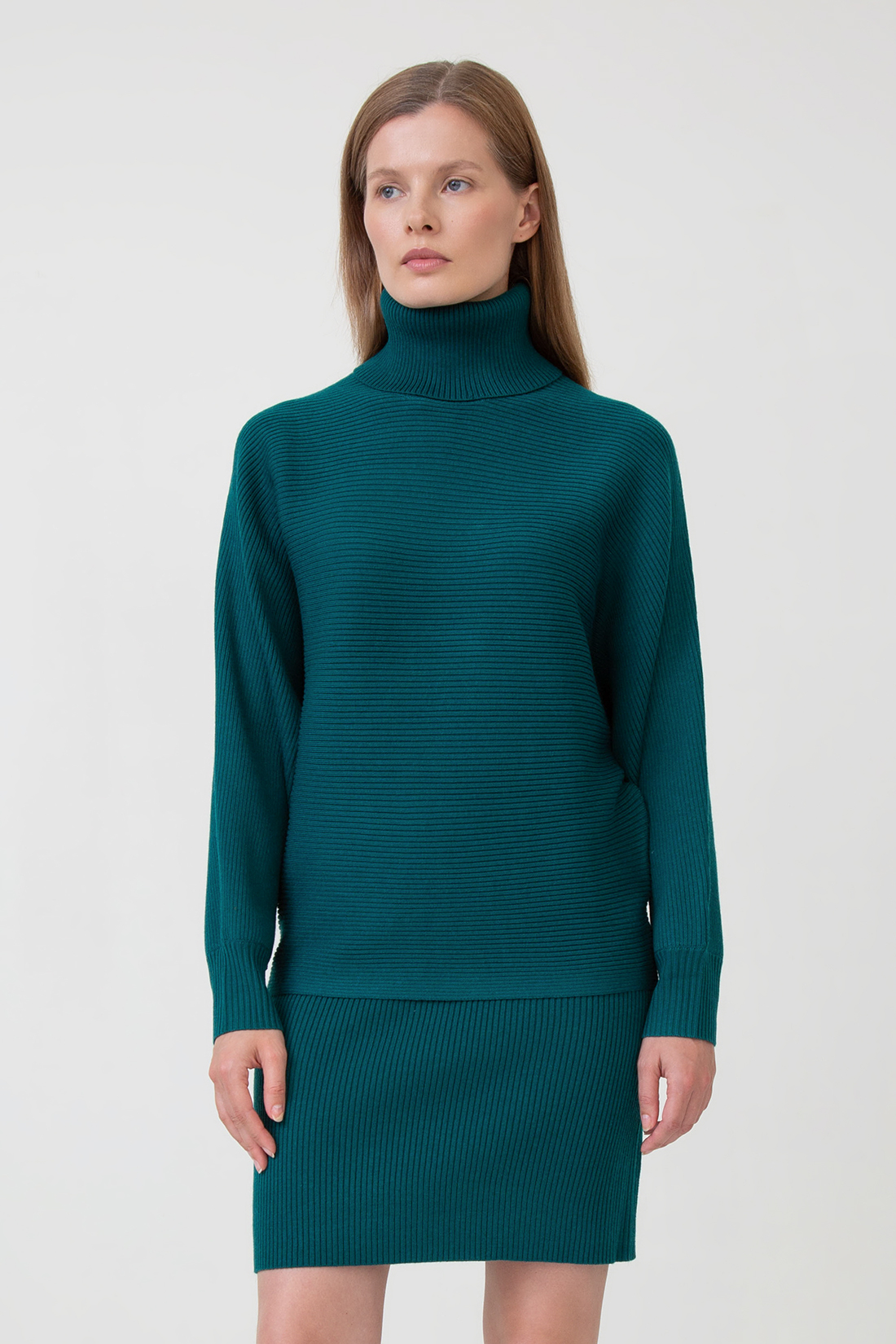Свитер с рукавами «летучая мышь» - элегантный способ согреться в холода. Поперечная рельефная вязка придаёт ему особый объём и шарм. Эту модель можно сочетать с любыми джинсами или брюками, но особенно эффектно она смотрится в тандеме с парной юбкой, которую вы можете найти в коллекции нашего бренда. Свитер имеет высокий воротник с отворотом, связанный эластичным узором в рубчик, как и нижняя часть изделия, и манжеты. Свитер выполнен из тёплого вязаного трикотажа с многокомпонентным составом. Натуральная шерсть отлично согревает в непогоду. Вискоза комфортна в любой ситуации: в одежде из такого материала не бывает жарко или холодно. Добавление полиамида делает трикотаж прочнее, благодаря чему модель дольше сохраняет аккуратный внешний вид. Обратите внимание: чтобы изделие радовало вас своим качеством, стирайте свитер в бережном или ручном режиме при температуре не выше 30 градусов.