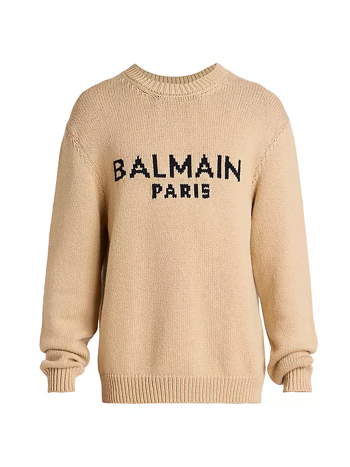 Свитер из смесовой шерсти с логотипом Balmain, черный