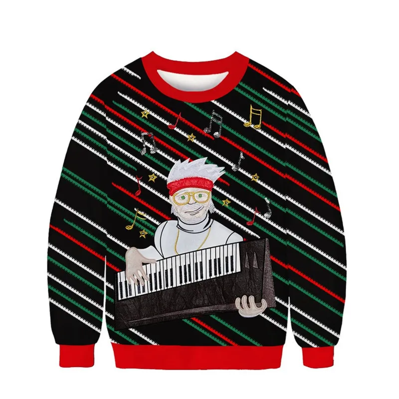 Свитер мужской/женский Рождественский с круглым вырезом и 3D-принтом