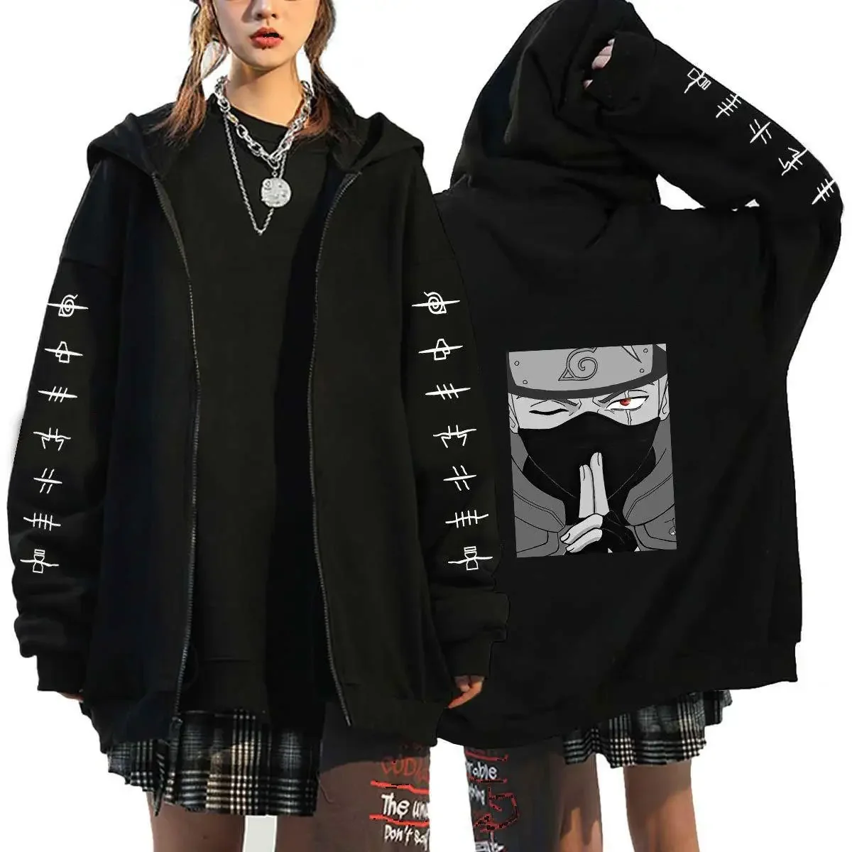 Свитер на молнии с принтом Наруто, для мужчин и женщин