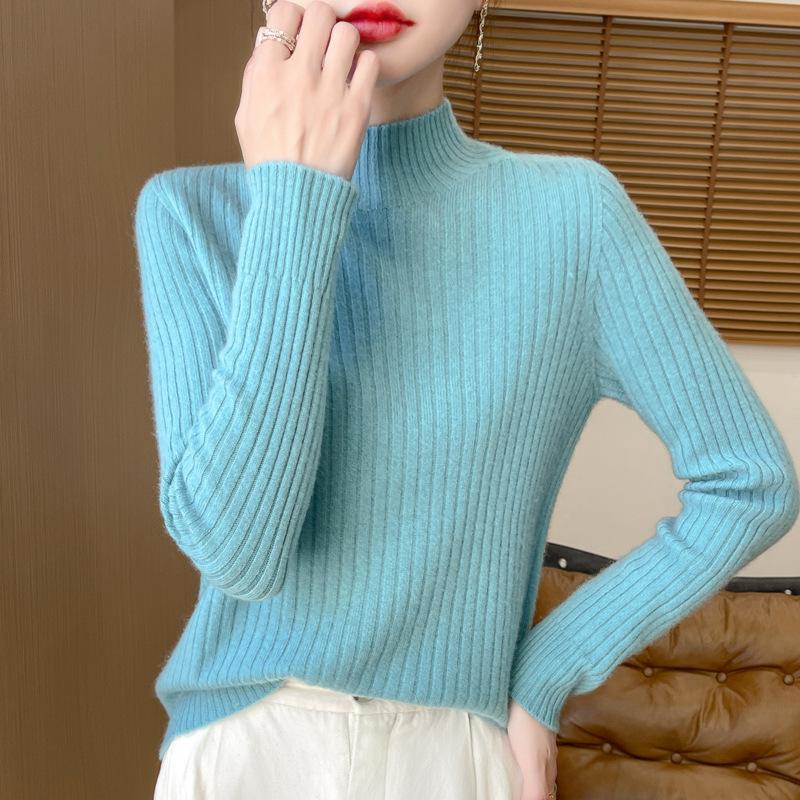 Свитер с полувысоким воротом и полосками для женщин, осенне-зимний, теплый, тонкий, трикотажный свитер, нижняя часть рубашки M озеро синий