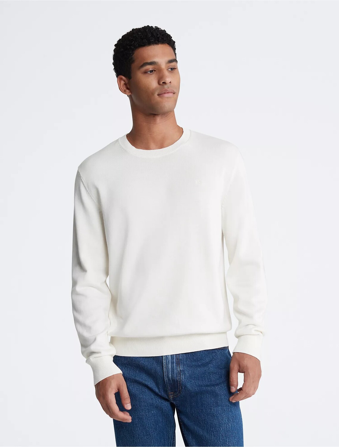Свитер, изготовленный из 100% хлопка, обеспечивает абсолютный комфорт в течение дня. Модель с длинными рукавами и круглым вырезом. Эластичные ребристые манжеты и вышитый логотип с монограммой CK в верхней части груди.