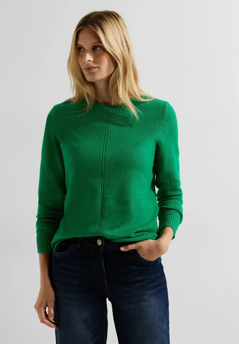 Свитер Cecil с круглым вырезом, меланжевого цвета, зеленый