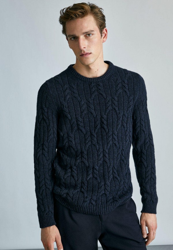 Свитер Massimo Dutti. Цвет: синий. Сезон: Осень-зима 2021/2022.