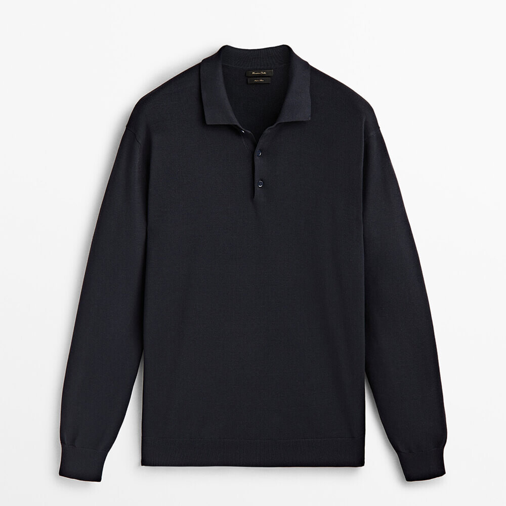 Свитер Massimo Dutti Comfort Polo Collar Knit, тёмно-синий